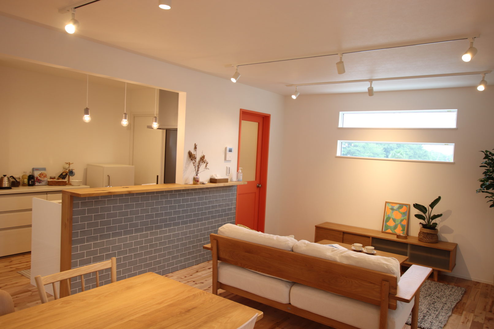 そしてリビング入口はこの家の顔といってもいい、オレンジ色のドアです。ビビッドなその色合いに気持ちは高まります。