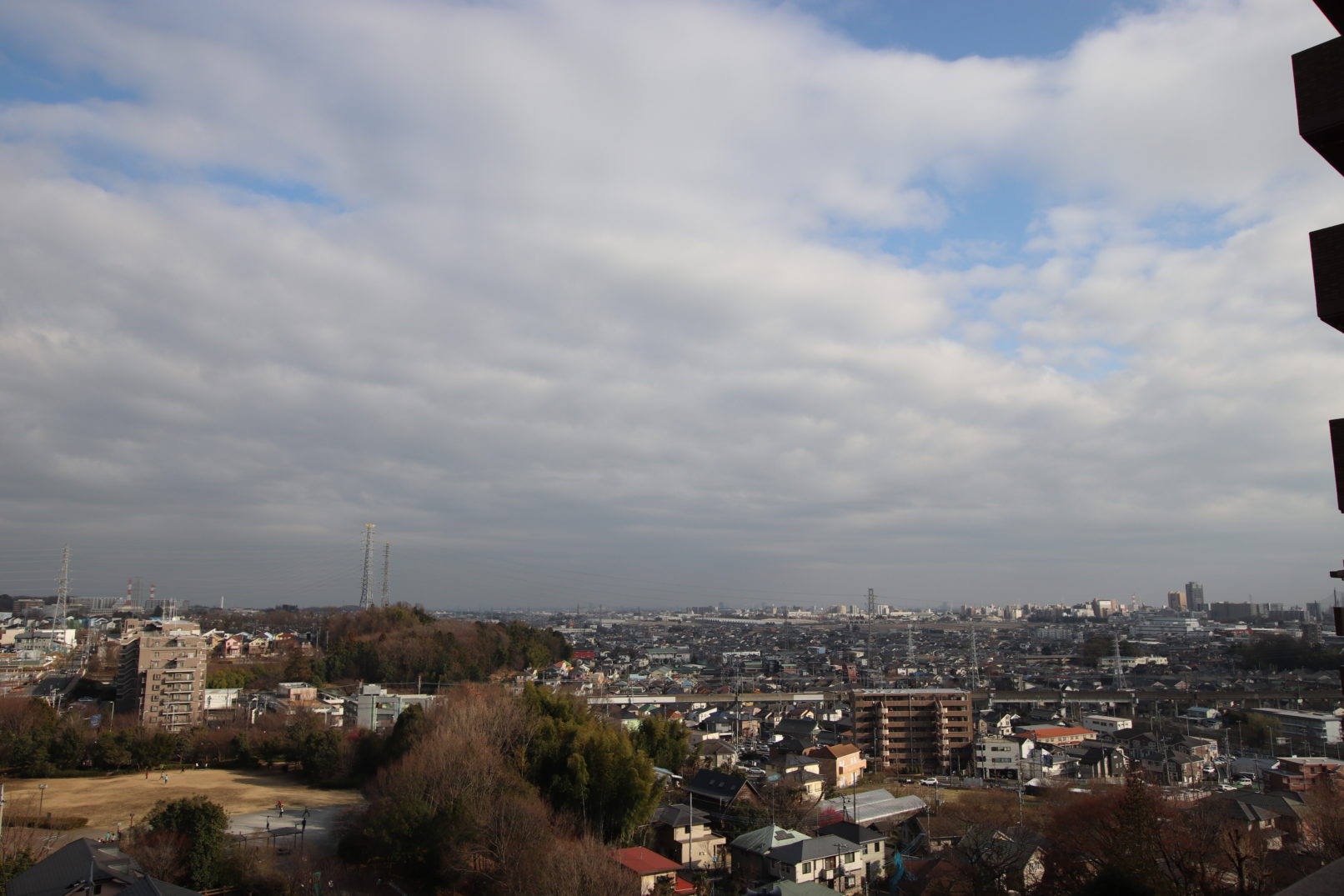 横浜線を見下ろしつつ東の空遥か彼方まで見渡すことが出来るという、たまらない開放感です。