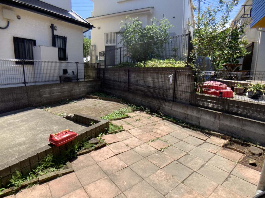 小さなお庭スペースがあります。ここはそのままの状態で残っているので、このままでも悪くはないですが、今は簡単に設置出来るタイルなどもありますし、DIYなど好きな方はちょっといじってみても良いかもしれません。