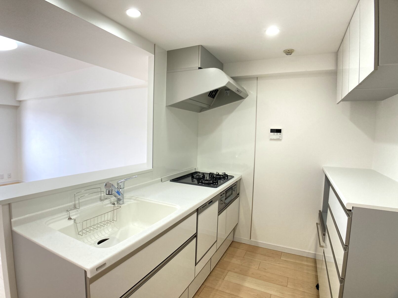 コの字バルコニーで陽当たり良好、たっぷり収納できるWIC含め各部屋収納が充実しているお部屋となります。さらに、ハンドシャワー付き対面キッチンで、ビルトイン食洗機、専用バックカウンター付きなど設備充実しております。
