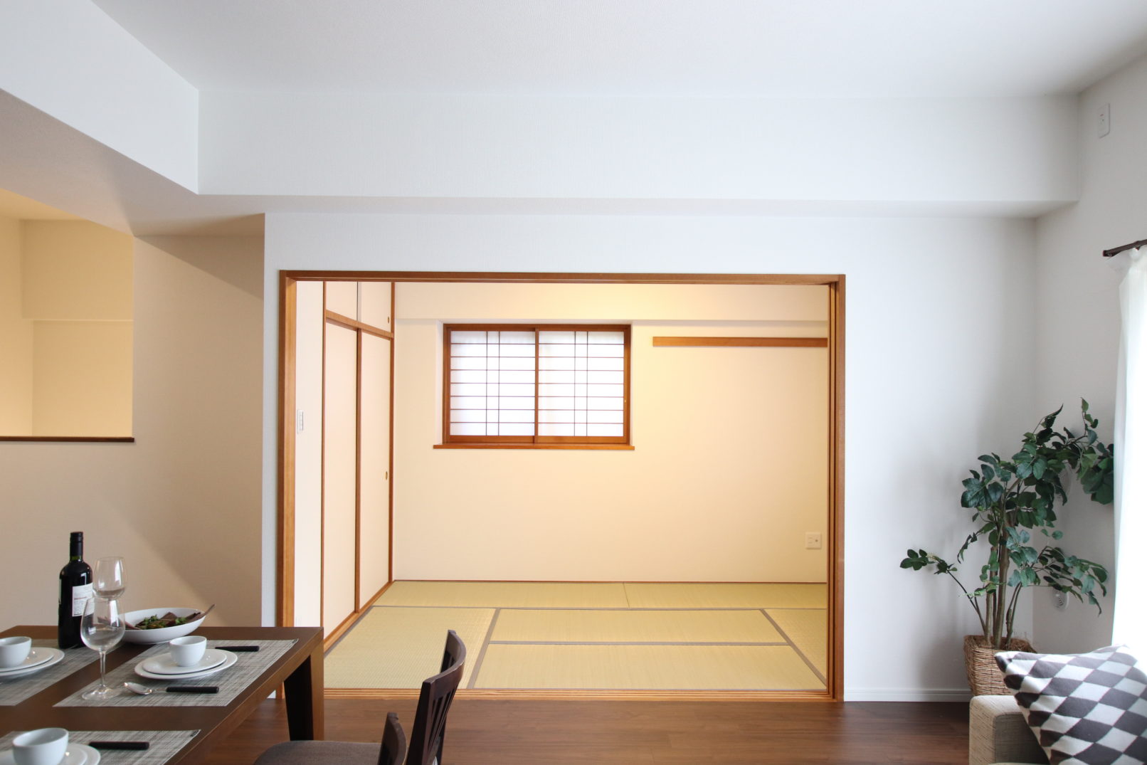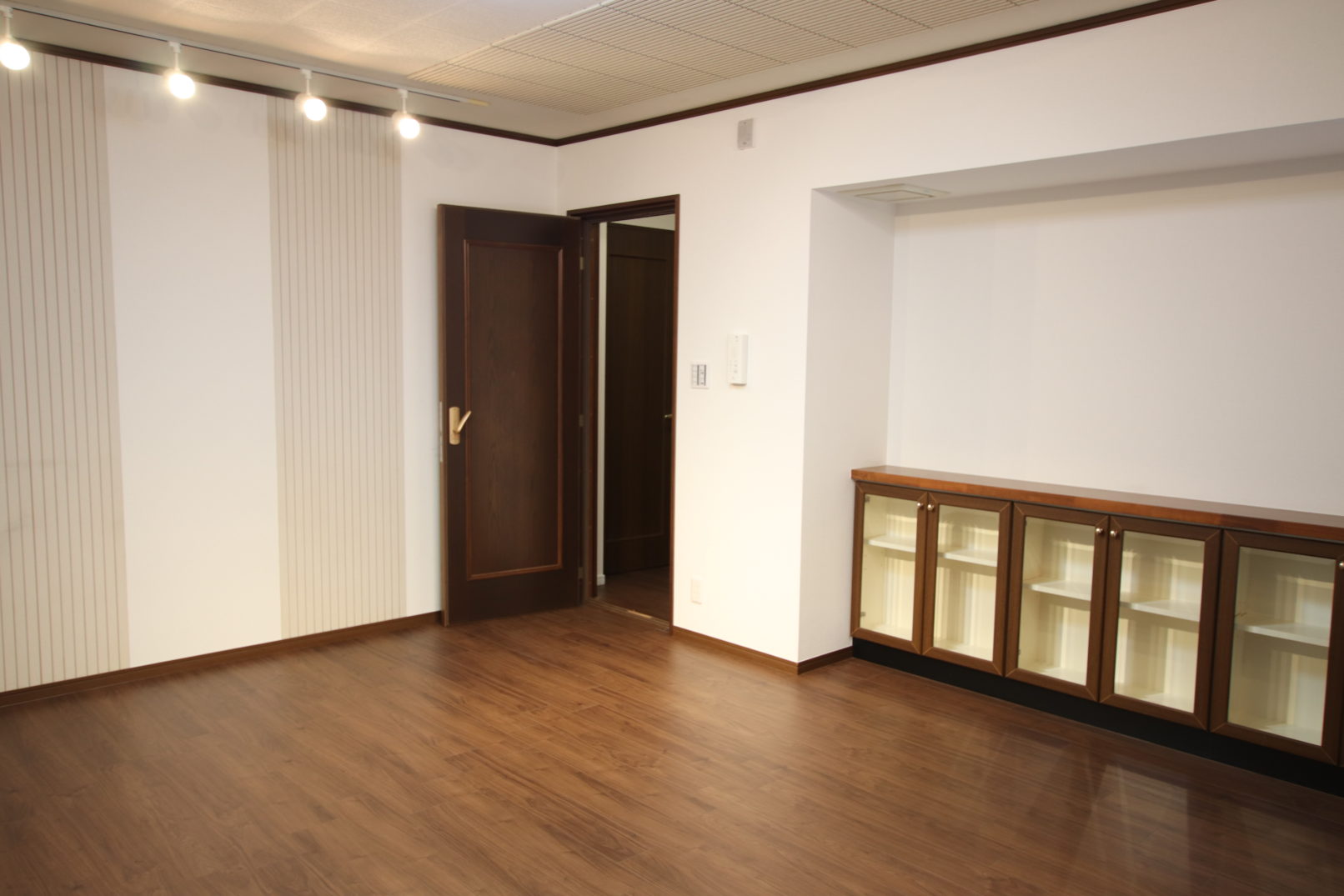 今回ご紹介するお部屋は新規リフォームされており、ウォールナット色の床や建具が落ち着いた雰囲気です。