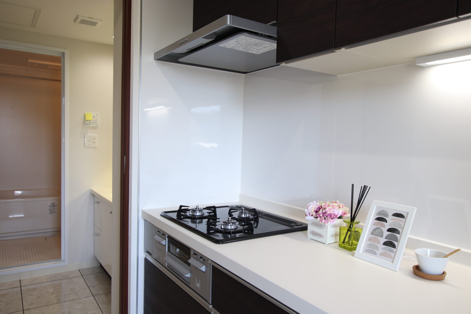 特筆すべきはキッチンから洗面所、バスルームに続くこの間取り。