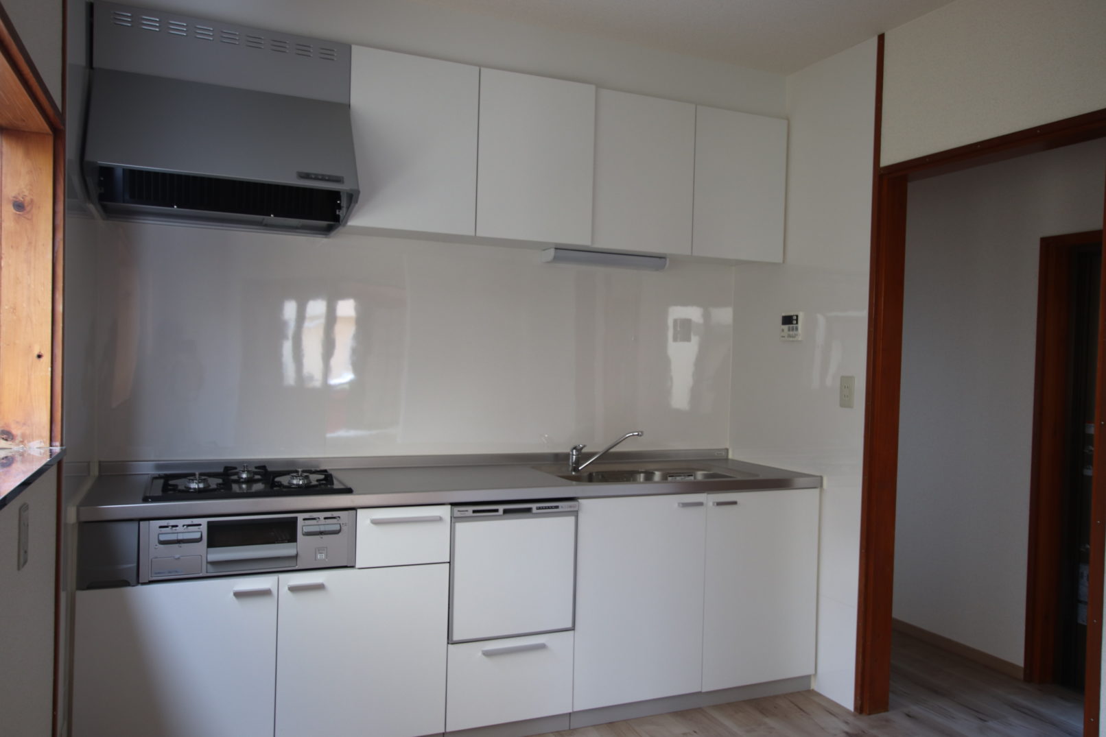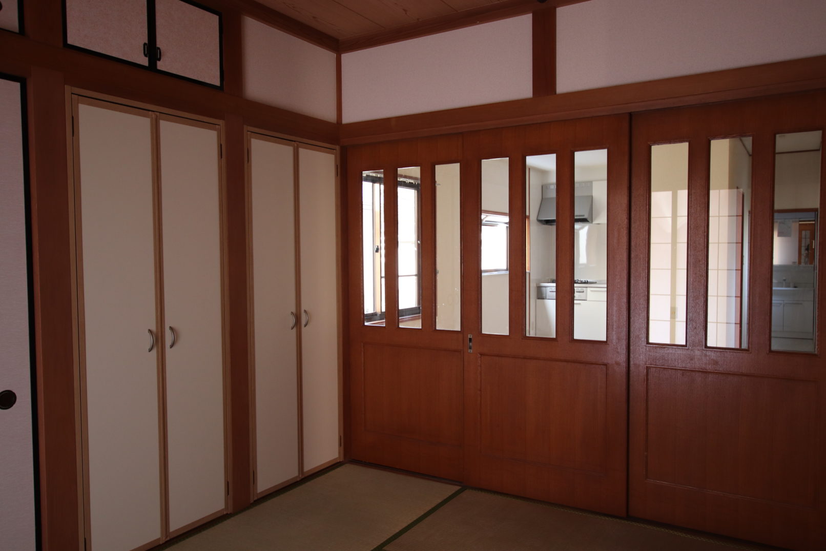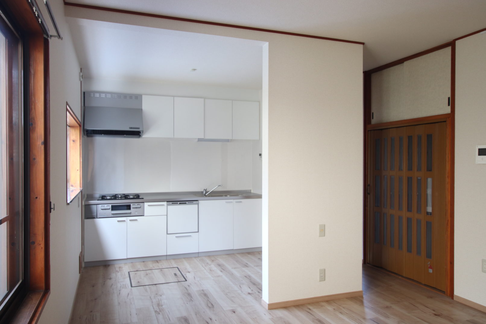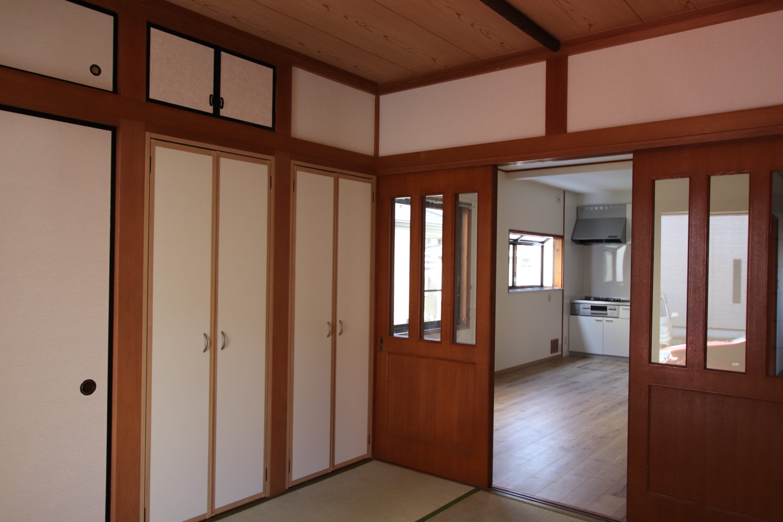 入ってすぐの和室は昔ながらの佇まいを残しつつ、綺麗にリフォームされています。もちろん気になるキッチン、洗面所、トイレは勿論ピカピカの新品です。キッチンの右手すぐ横に勝手口があるのが主婦的にはかなり嬉しいポイントです。