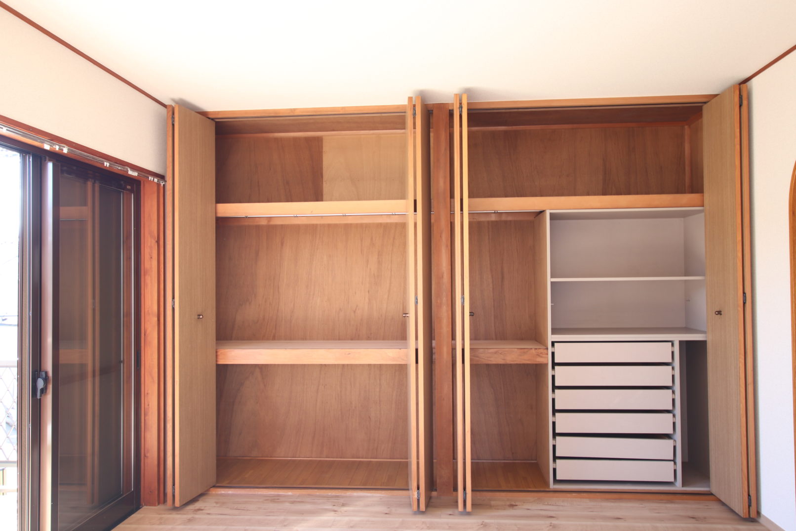 まずは日当たりが良く、壁一面がクローゼットになった主寝室。