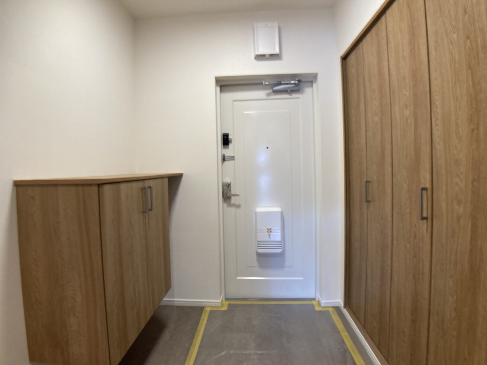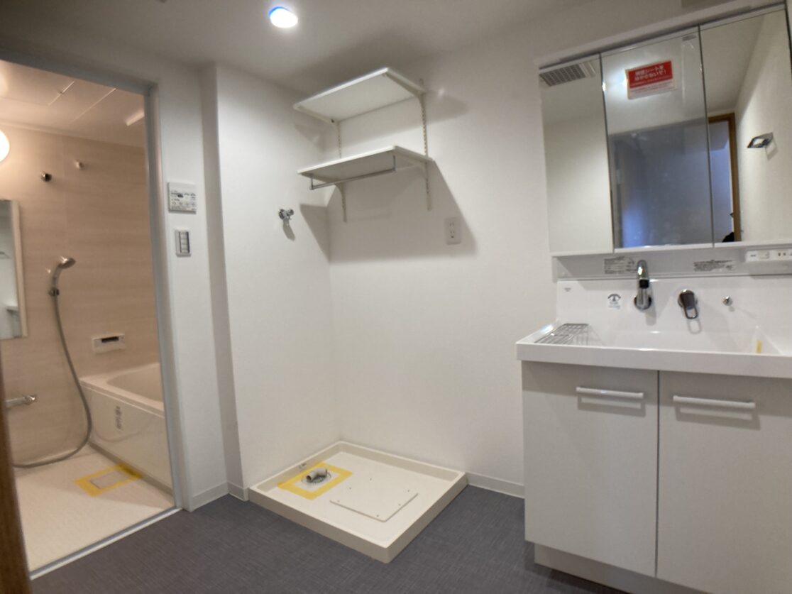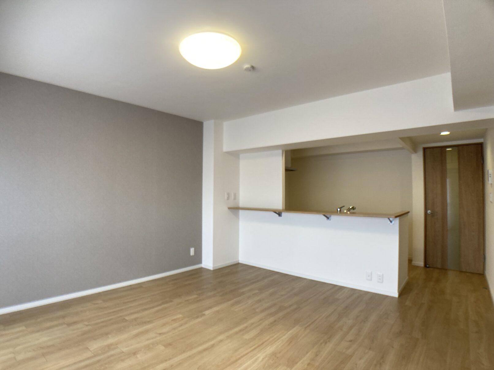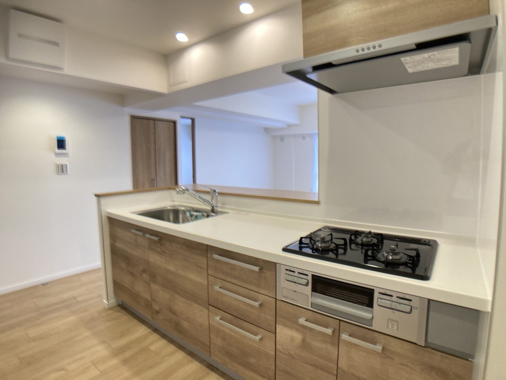 全体的に、クロスや建具、キッチンパネルなど木の温かいぬくもりが感じられる室内となっておりまして、16.5帖のLDK、玄関の収納スペース、ゆったりとした洗面スペースが特徴的です。